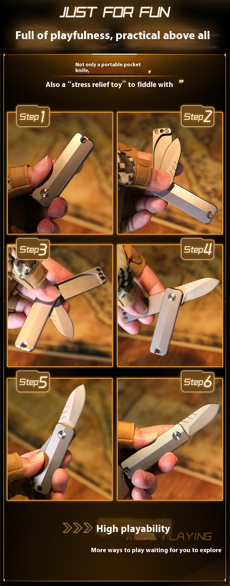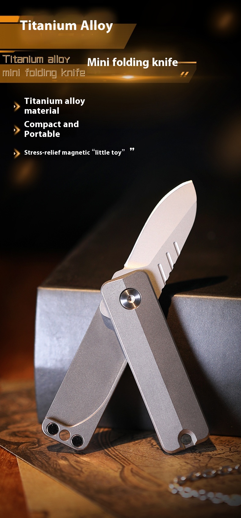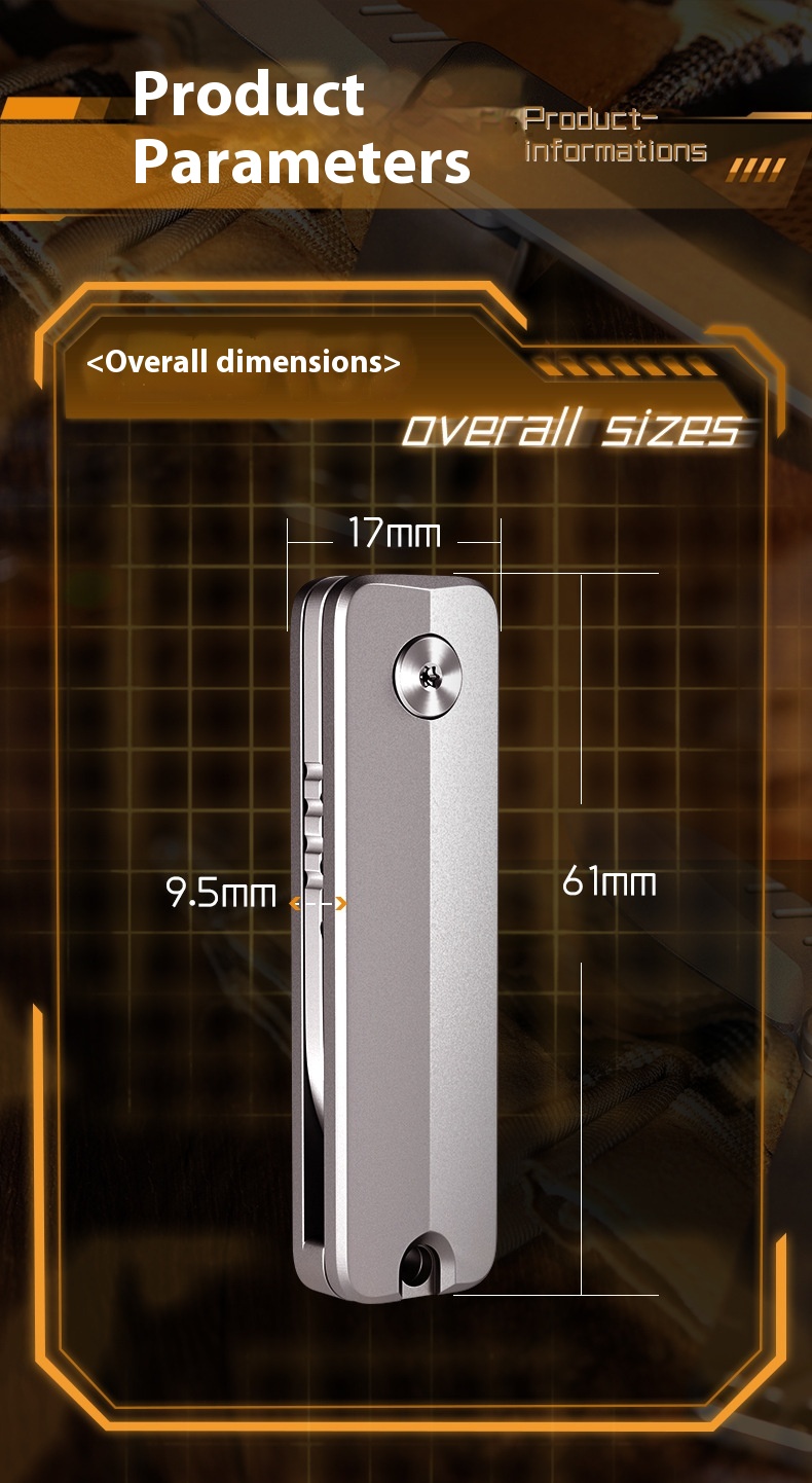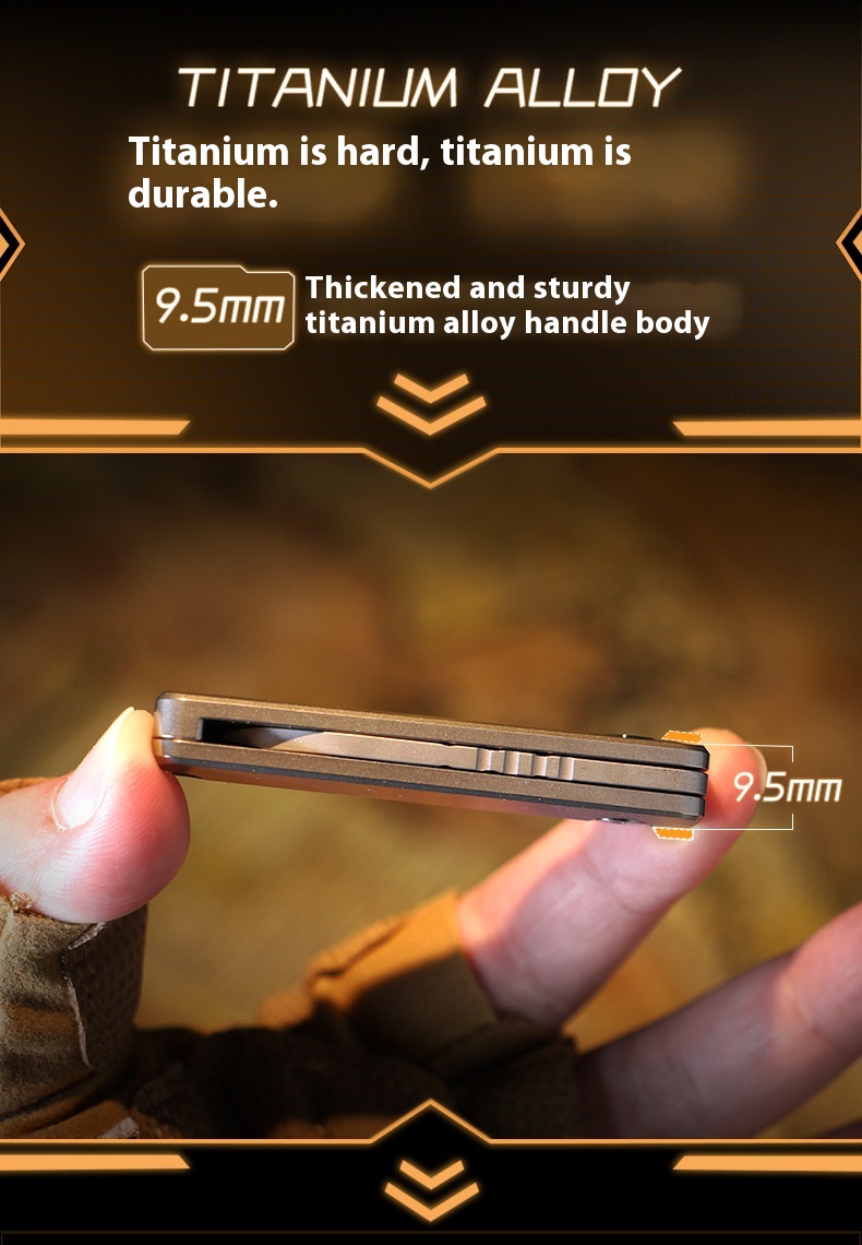 Material: handle is titanium alloy, blade is D2